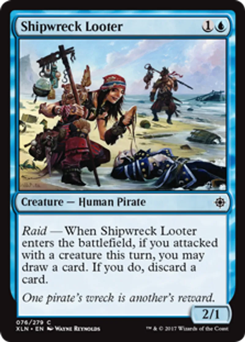 | Oracle Text | Raid — When Shipwreck Looter enters the battlefield, if you attacked with a creature this turn, you may draw a card. If you do, discard a card. | ||