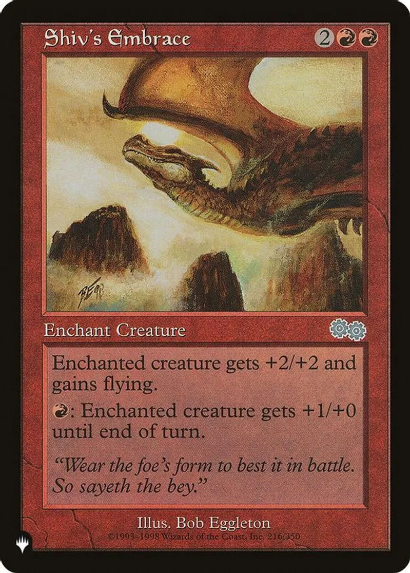 Magic: the Gathering (mtg) Uncommon enchant creature Shiv's Embrace from The List Reprints (PLIST) last updated 2026-02-21 15:31:01