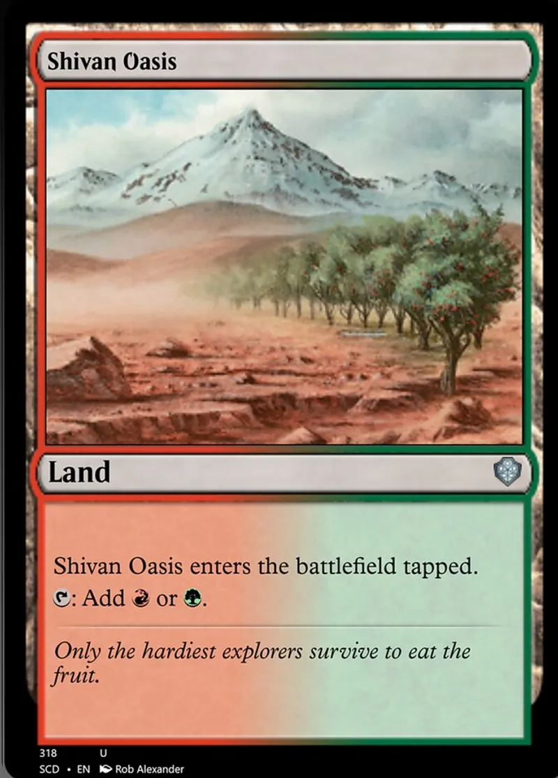 Magic: the Gathering (mtg) uncommon Land Shivan Oasis from Starter Commander Decks (scd) last updated 2026-02-07 16:20:02