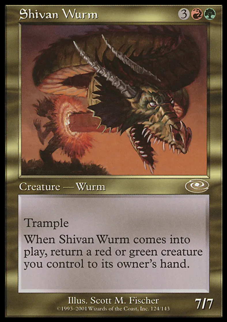 | Oracle Text | Trample When Shivan Wurm enters the battlefield, return a red or green creature you control to its owner's hand. | ||