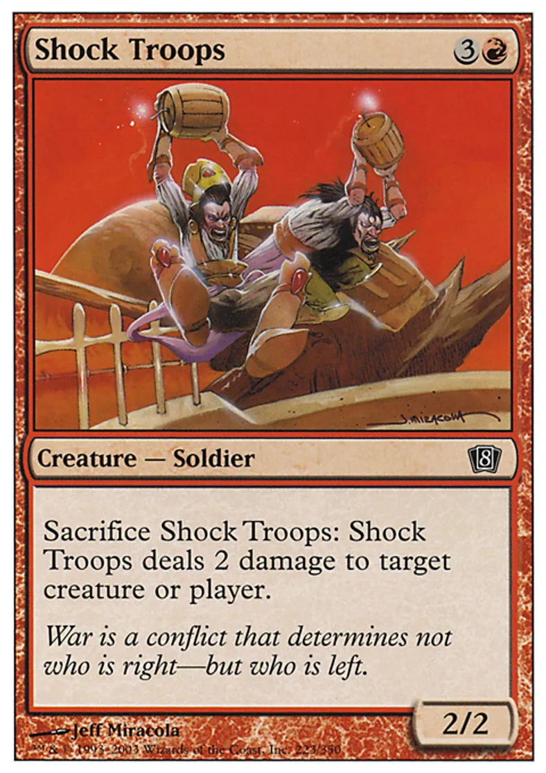 | Oracle Text | Sacrifice Shock Troops: Shock Troops deals 2 damage to target creature or player. | ||