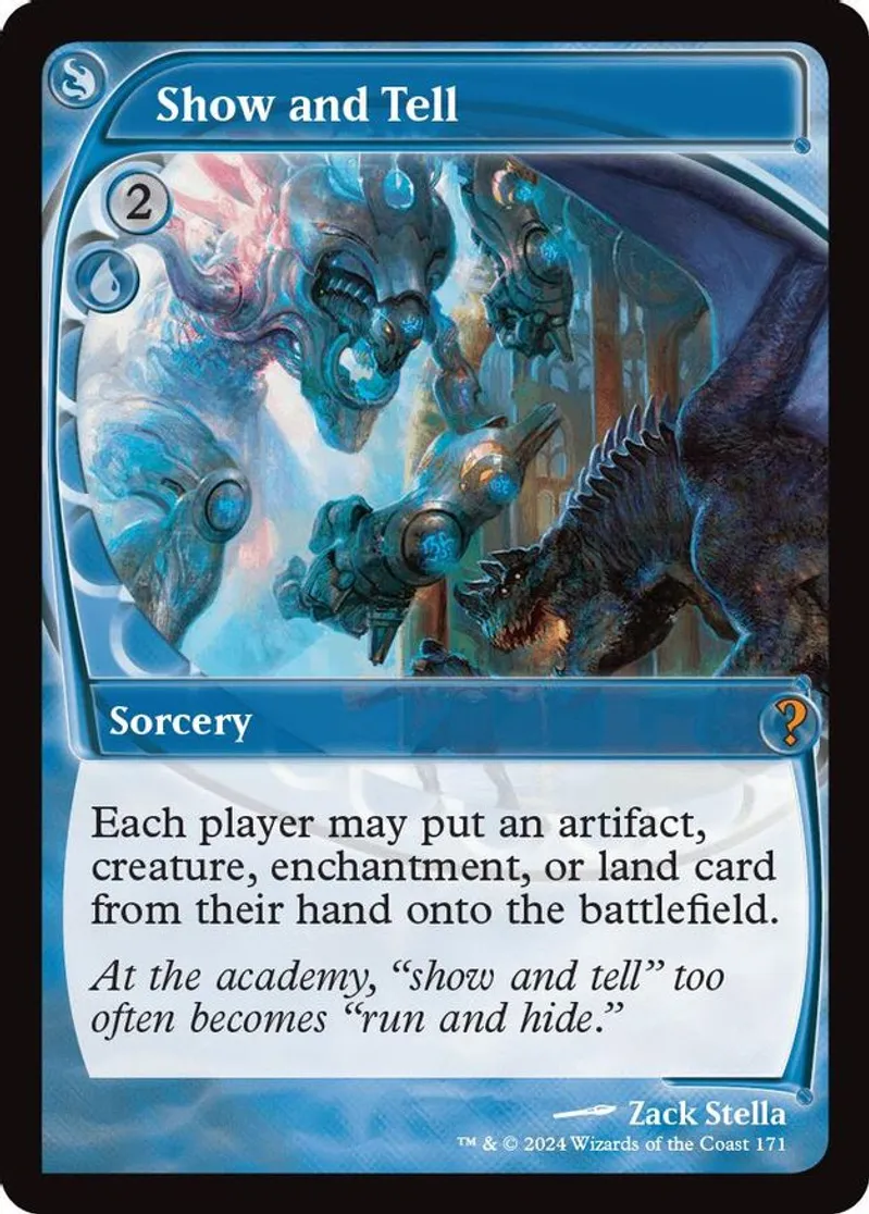 Show and Tell (Future Sight) is a Mythic Rare in the set Mystery Booster 2.