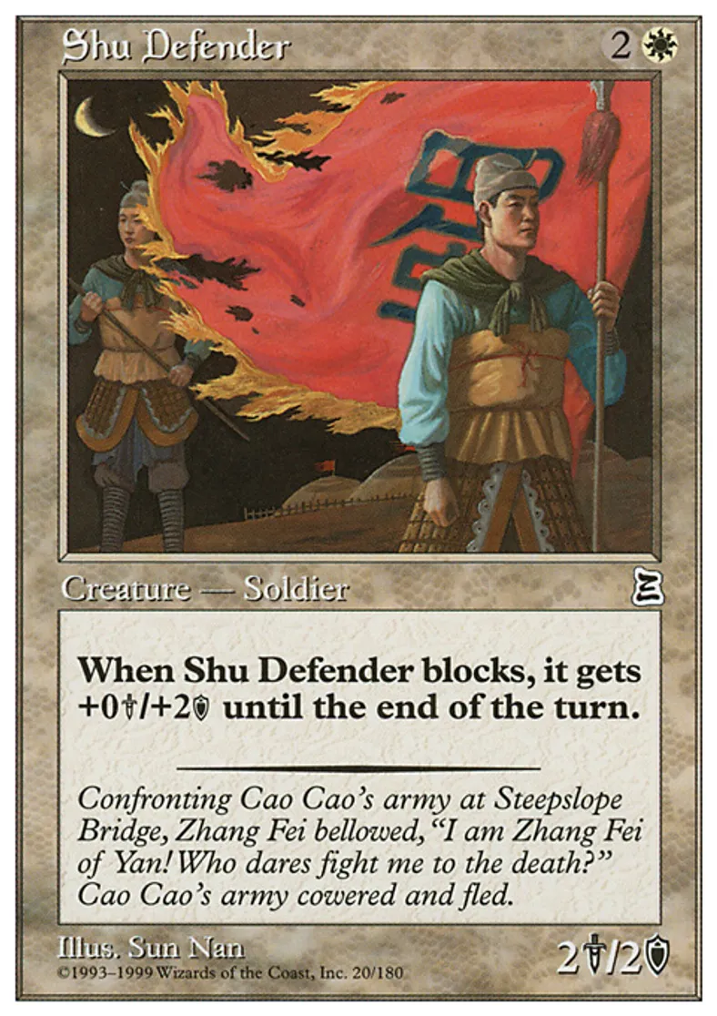Magic: the Gathering (mtg) Common Creature - Human Soldier Shu Defender from Portal Three Kingdoms (PTK) last updated 2026-02-24 15:07:03