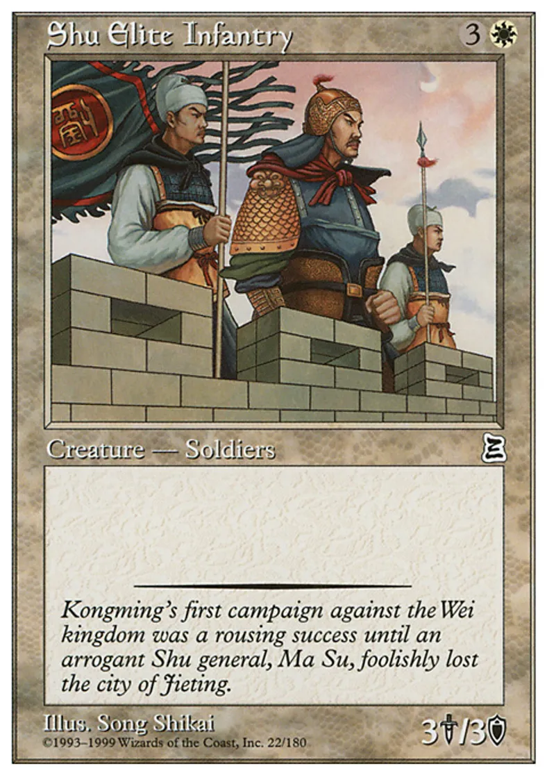 Magic: the Gathering (mtg) Common Creature - Human Soldier Shu Elite Infantry from Portal Three Kingdoms (PTK) last updated 2026-02-24 15:07:03