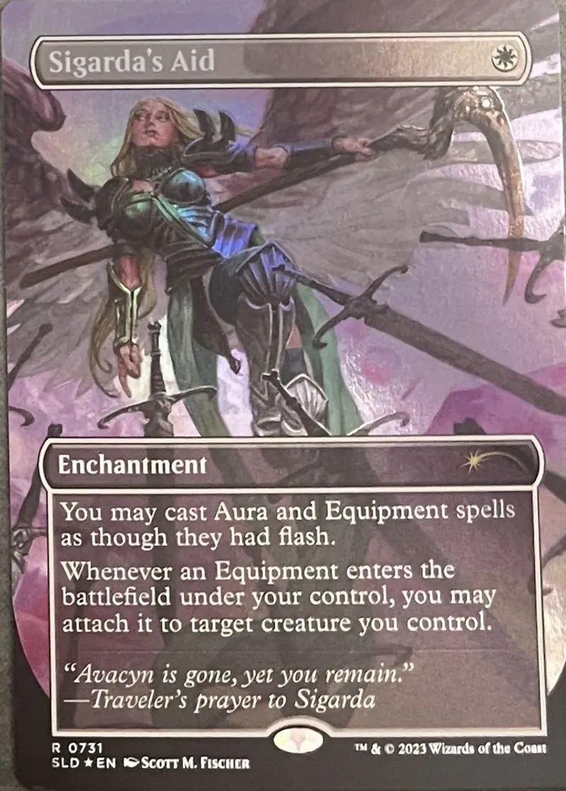 Magic: the Gathering (mtg) Rare Enchantment Sigarda's Aid from Secret Lair Drop Series (SLD) last updated 2026-02-25 15:45:06