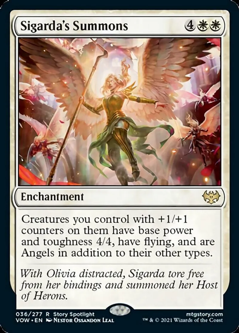 Sigarda's Summons is a rare in the set Innistrad: Crimson Vow.