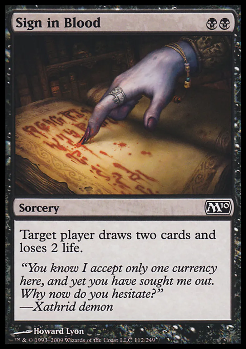Magic: the Gathering (mtg) Common Sorcery Sign in Blood from Magic 2010 (M10) last updated 2026-01-18 14:46:07