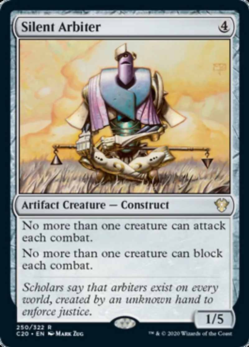 Magic: the Gathering (mtg) rare Artifact Creature — Construct Silent Arbiter from Commander 2020 (c20) last updated 2026-02-24 14:30:33