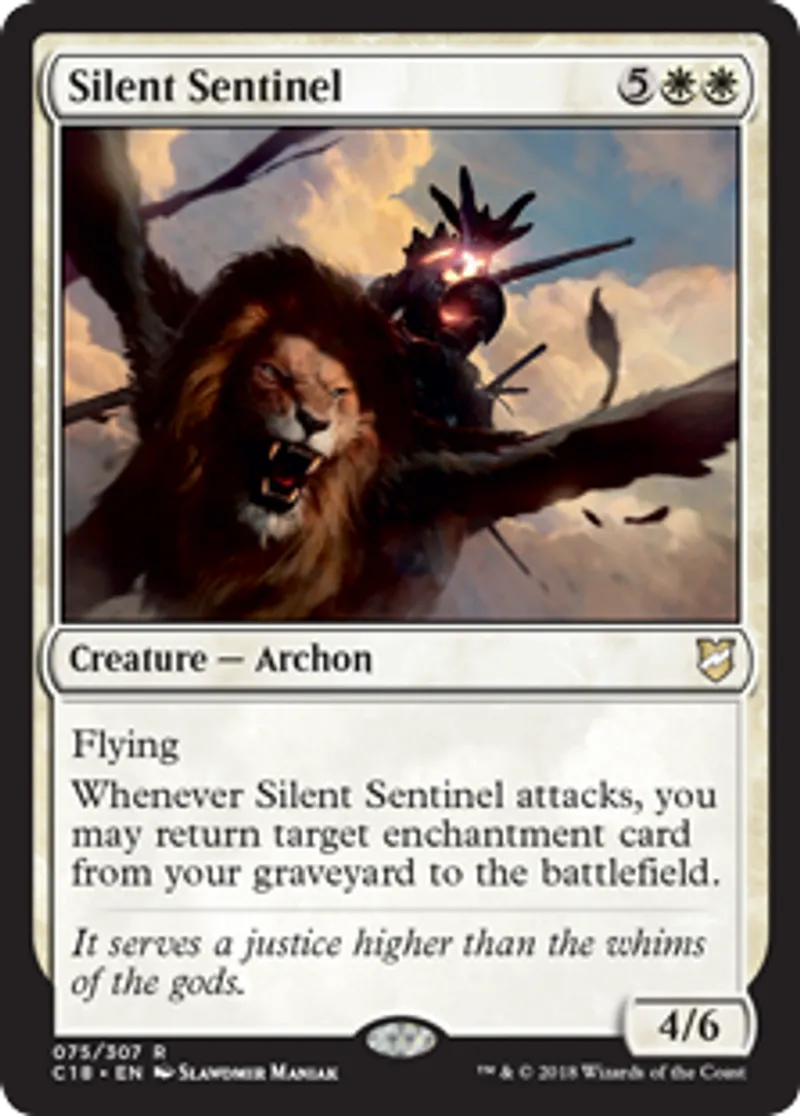 | Oracle Text | Flying Whenever Silent Sentinel attacks, you may return target enchantment card from your graveyard to the battlefield. | ||