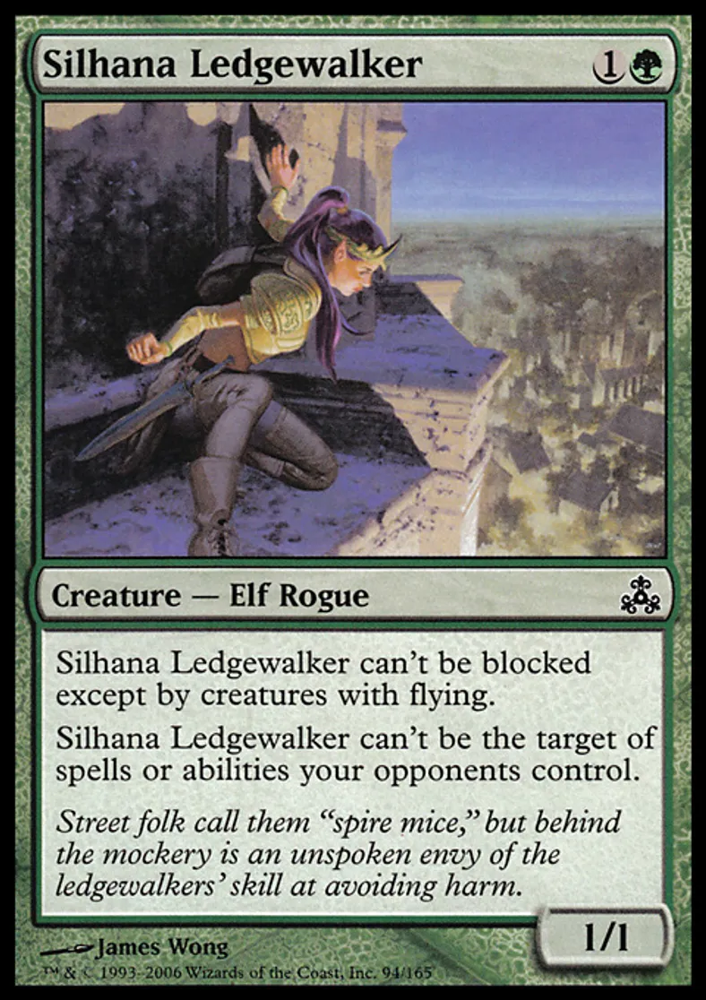 | Oracle Text | Hexproof (This creature can't be the target of spells or abilities your opponents control.) Silhana Ledgewalker can't be blocked except by creatures with flying. | ||