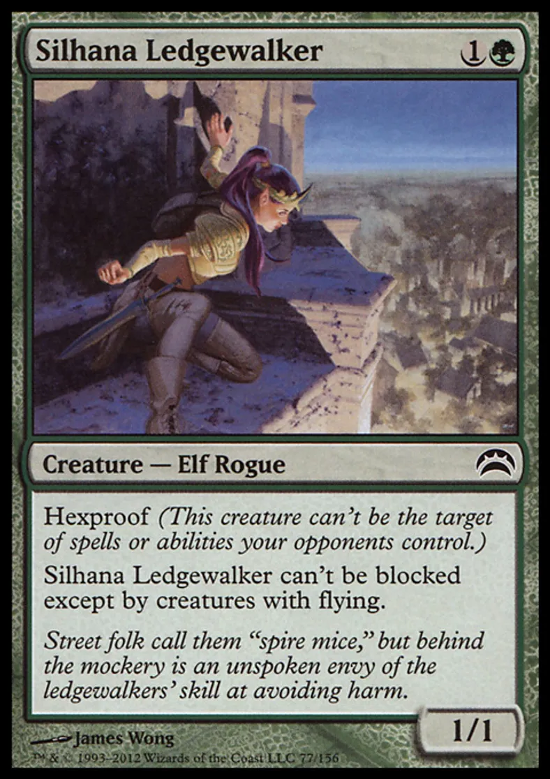 | Oracle Text | Hexproof (This creature can't be the target of spells or abilities your opponents control.) Silhana Ledgewalker can't be blocked except by creatures with flying. | ||