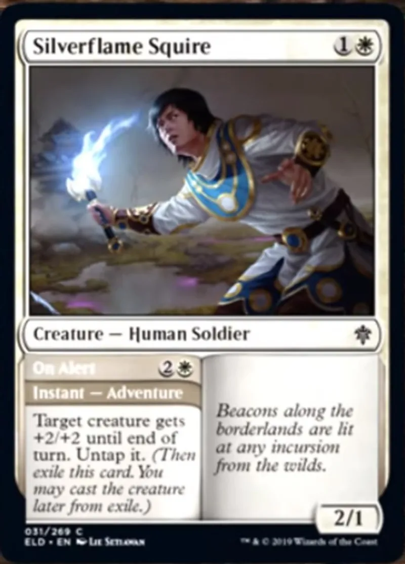 Magic: the Gathering (mtg) Common Creature — Human Soldier // Instant — Adventure Silverflame Squire from Throne of Eldraine (ELD) last updated 2026-02-21 17:00:02
