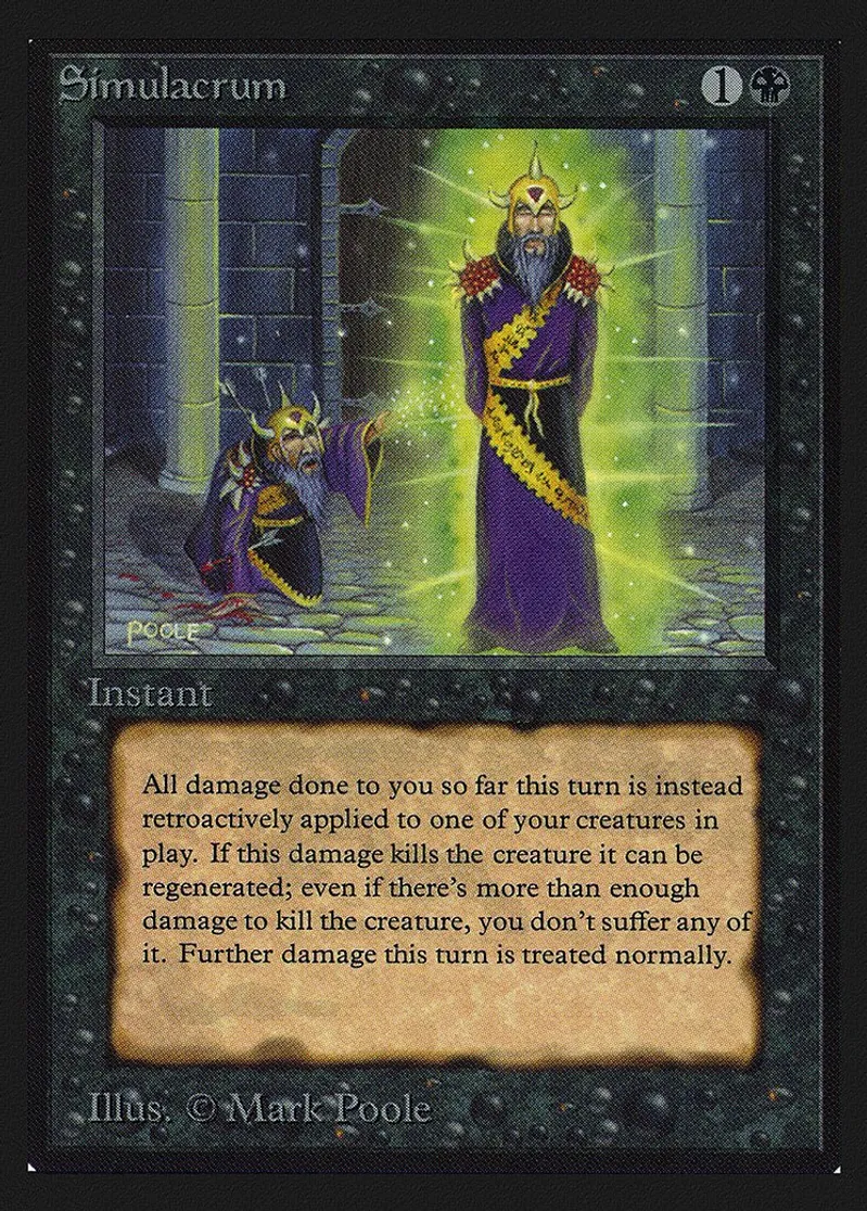 | Oracle Text | You gain life equal to the damage dealt to you this turn. Simulacrum deals damage to target creature you control equal to the damage dealt to you this turn. | ||