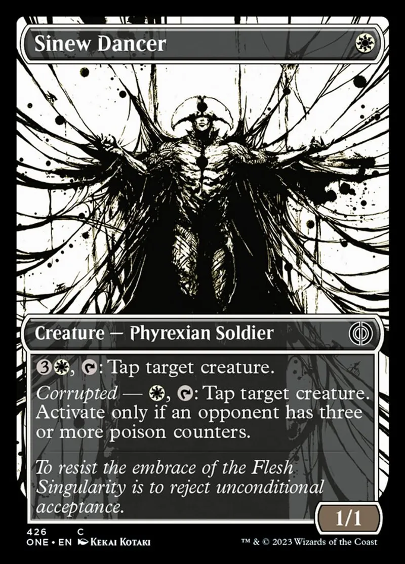 Sinew Dancer (Showcase) (Step-and-Compleat Foil) is a Common in the set Phyrexia: All Will Be One.