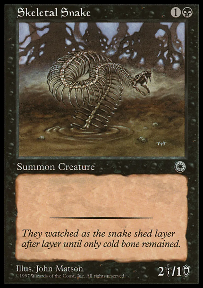 Magic: the Gathering (mtg) Common Creature - Snake Skeleton Skeletal Snake from Portal (POR) last updated 2026-02-21 17:30:36