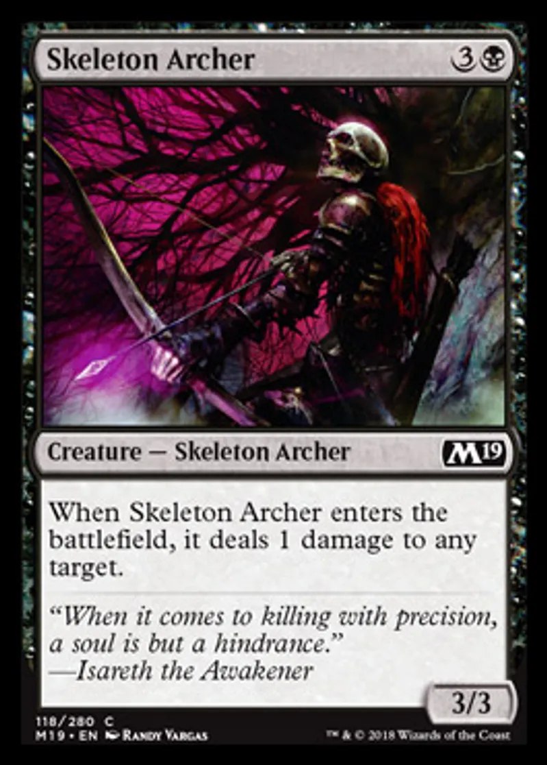 Magic: the Gathering (mtg) Common Creature - Skeleton Archer Skeleton Archer from Core Set 2019 (M19) last updated 2026-02-21 16:53:32