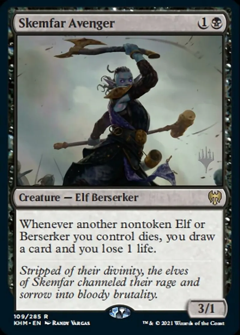 Magic: the Gathering (mtg) rare Creature — Elf Berserker Skemfar Avenger from Promo Pack: Kaldheim (pKHM) last updated 2026-02-21 16:33:37