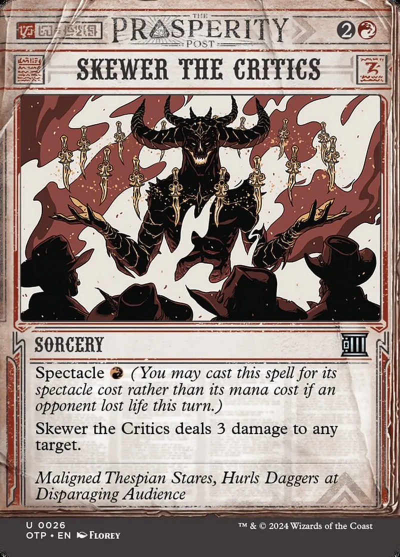 Magic: the Gathering (mtg) uncommon Sorcery Skewer the Critics from Breaking News (otp) last updated 2026-02-07 16:01:02