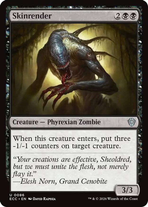 Magic: the Gathering (mtg) Uncommon creature — phyrexian zombie Skinrender from Commander: Lorwyn Eclipsed (ECC) last updated 2026-01-11 16:09:31