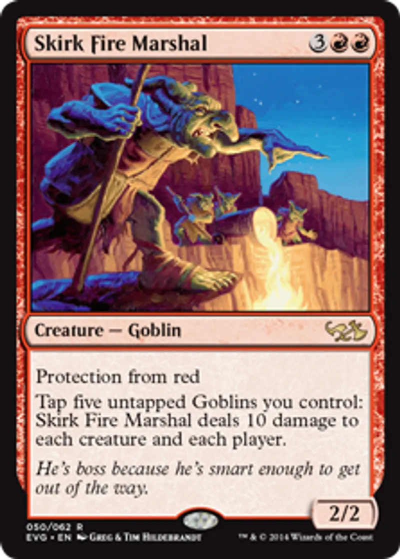 | Oracle Text | Protection from red Tap five untapped Goblins you control: Skirk Fire Marshal deals 10 damage to each creature and each player. | ||