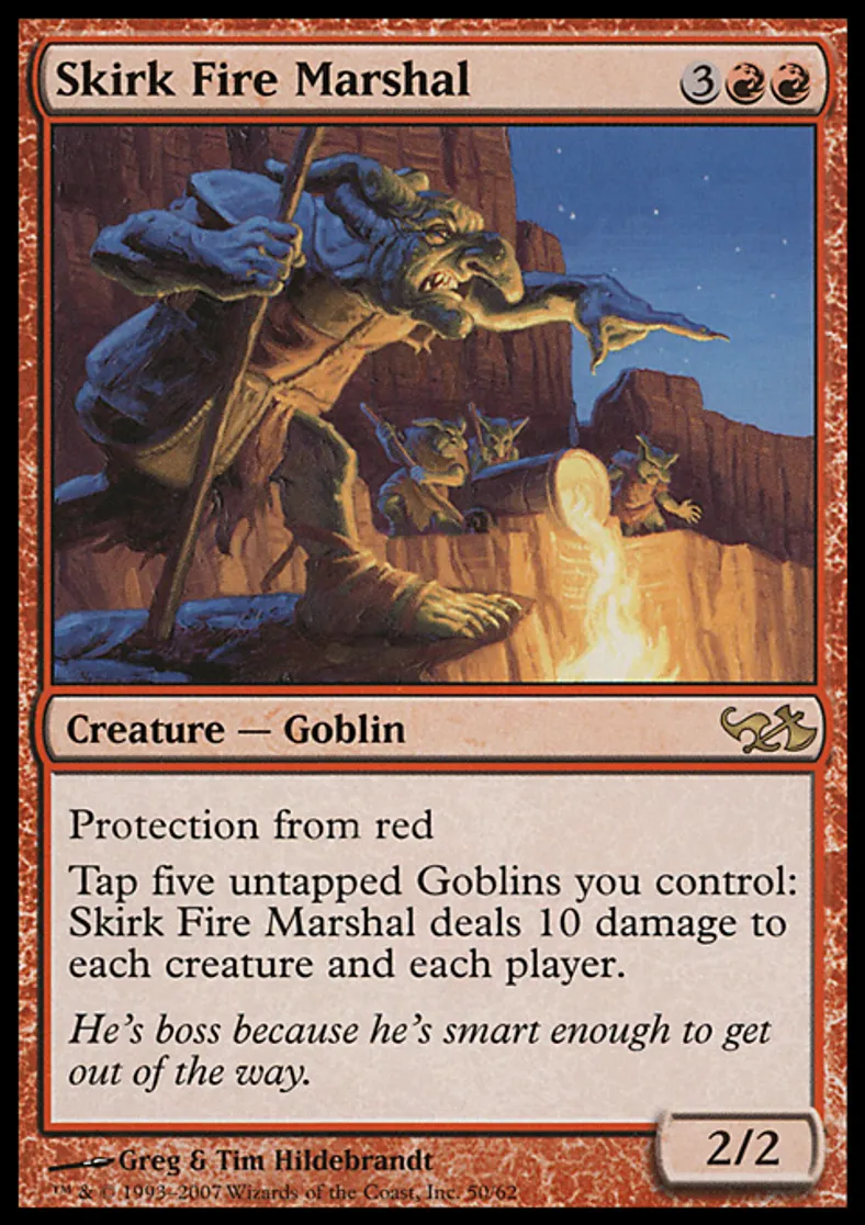 | Oracle Text | Protection from red Tap five untapped Goblins you control: Skirk Fire Marshal deals 10 damage to each creature and each player. | ||