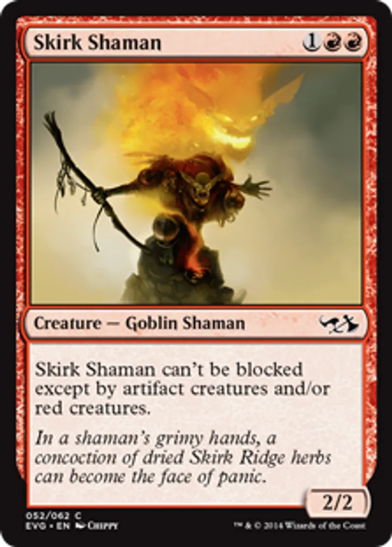 | Oracle Text | Skirk Shaman can't be blocked except by artifact creatures and/or red creatures. | ||
