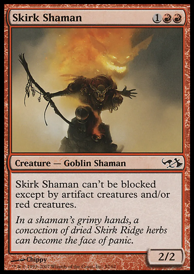 | Oracle Text | Skirk Shaman can't be blocked except by artifact creatures and/or red creatures. | ||