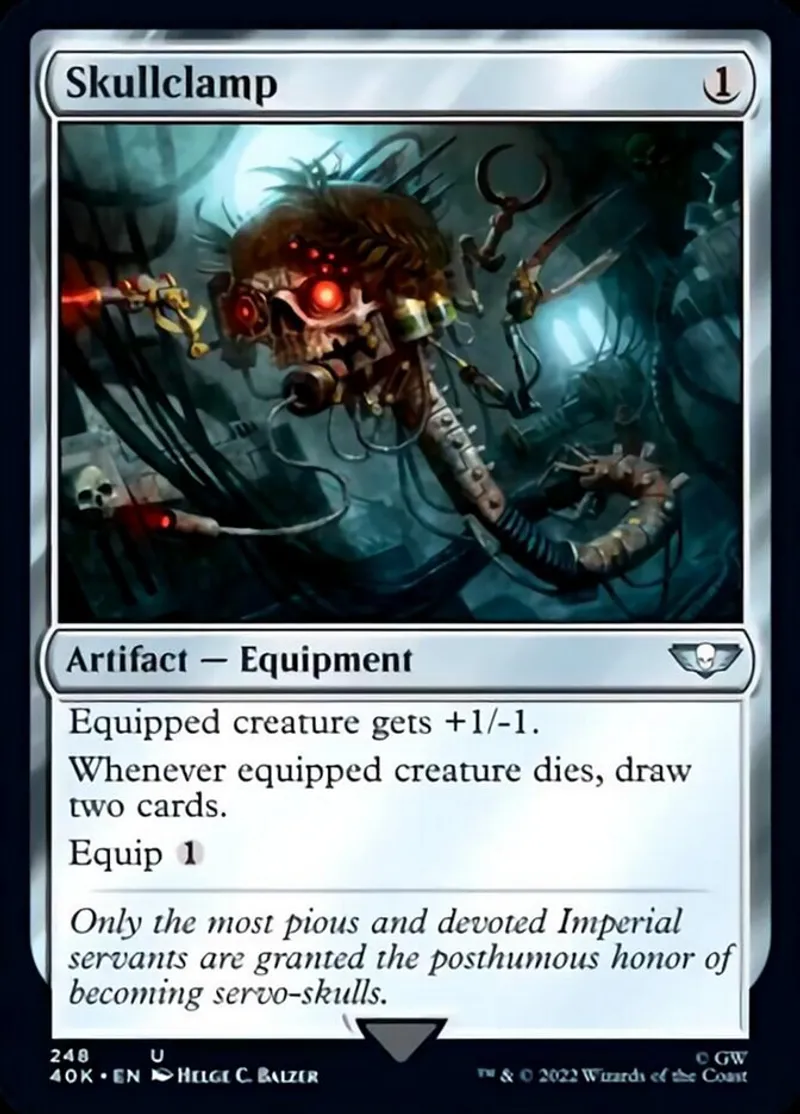 Magic: the Gathering (mtg) uncommon Artifact — Equipment Skullclamp from Warhammer 40,000 (40k) last updated 2026-02-24 14:24:36
