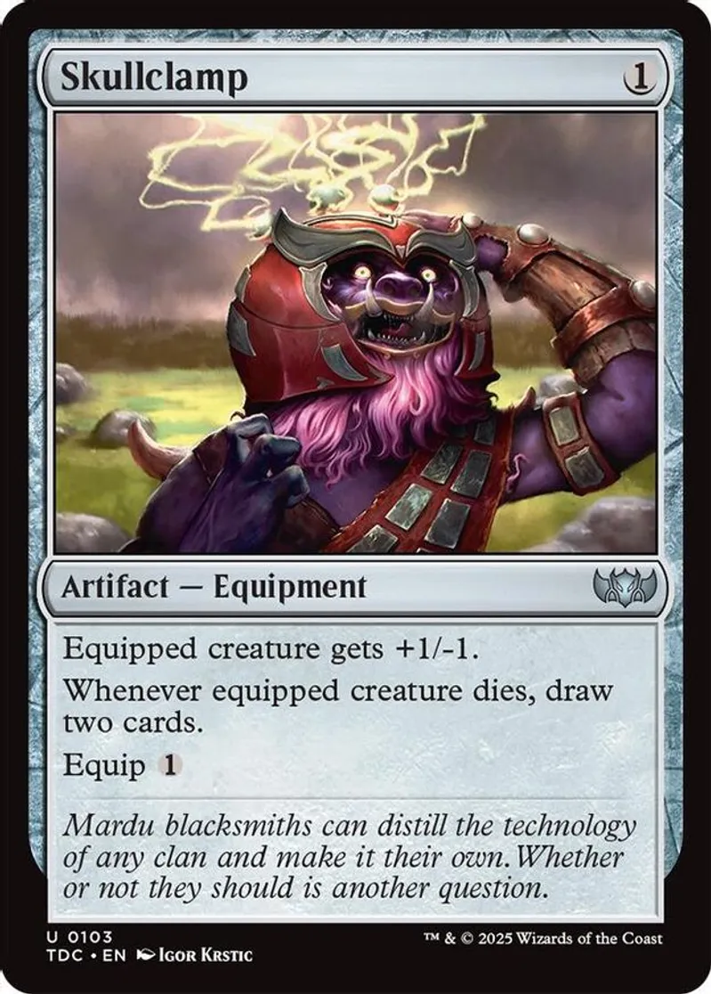 Magic: the Gathering (mtg) Uncommon artifact — equipment Skullclamp from Commander: Tarkir: Dragonstorm (TDC) last updated 2025-12-18 14:49:32