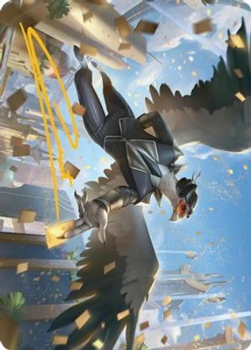 Skyboon Evangelist Art Card (Gold-Stamped Signature) is a Special in the set New Capenna Art Series.