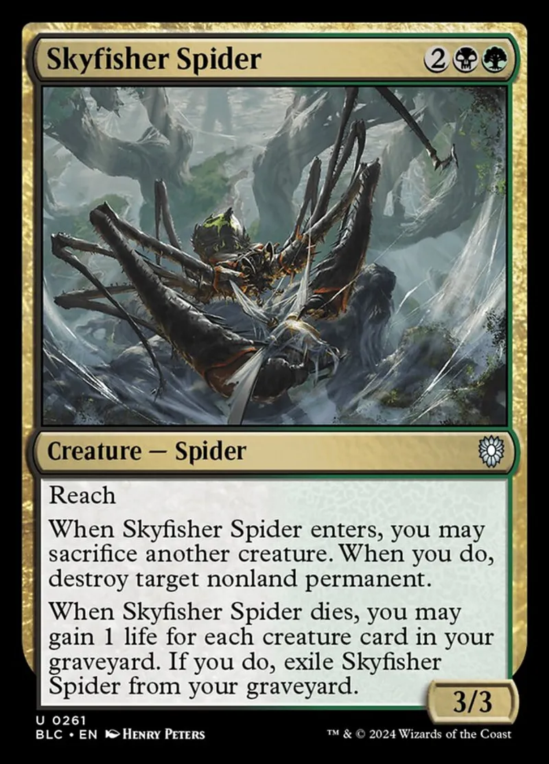 Skyfisher Spider is a uncommon in the set Bloomburrow Commander.