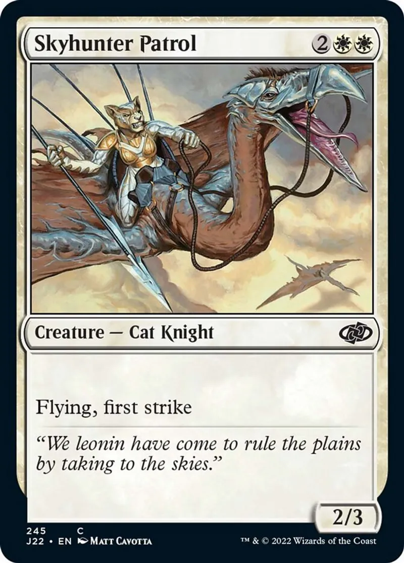 Magic: the Gathering (mtg) common Creature — Cat Knight Skyhunter Patrol from Jumpstart 2022 (j22) last updated 2026-02-21 16:17:02
