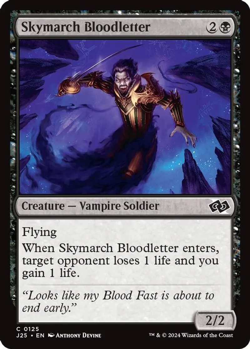 Magic: the Gathering (mtg) Common creature — vampire soldier Skymarch Bloodletter from Foundations Jumpstart (J25) last updated 2026-02-21 15:34:32
