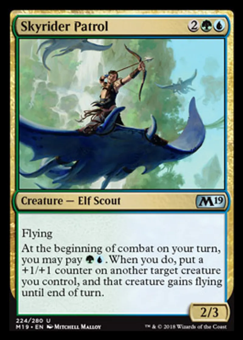 Magic: the Gathering (mtg) Uncommon Creature - Elf Scout Skyrider Patrol from Core Set 2019 (M19) last updated 2026-02-21 16:53:32