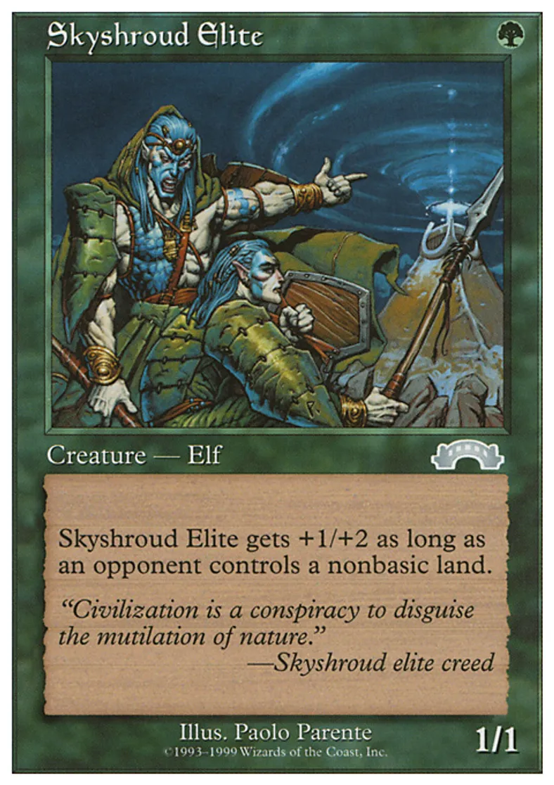 | Flavor Text | "Civilization is a conspiracy to disguise the mutilation of nature."—Skyshroud elite creed | ||