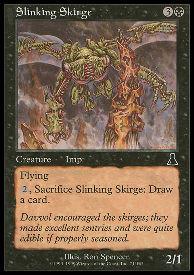 | Oracle Text | Flying {{2}}, Sacrifice Slinking Skirge: Draw a card. | ||