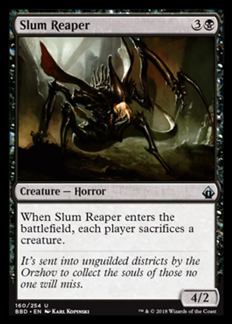 | Oracle Text | When Slum Reaper enters the battlefield, each player sacrifices a creature. | ||