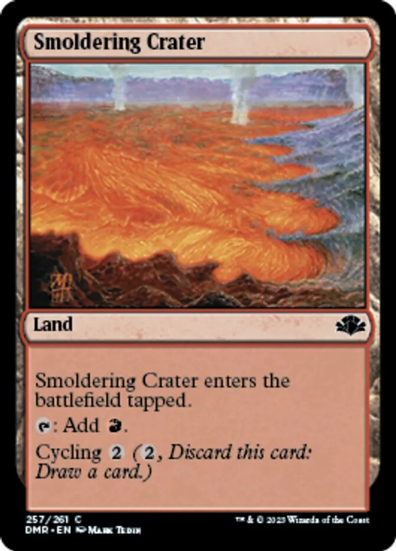 Magic: the Gathering (mtg) common Land Smoldering Crater from Dominaria Remastered (dmr) last updated 2026-02-21 16:18:31
