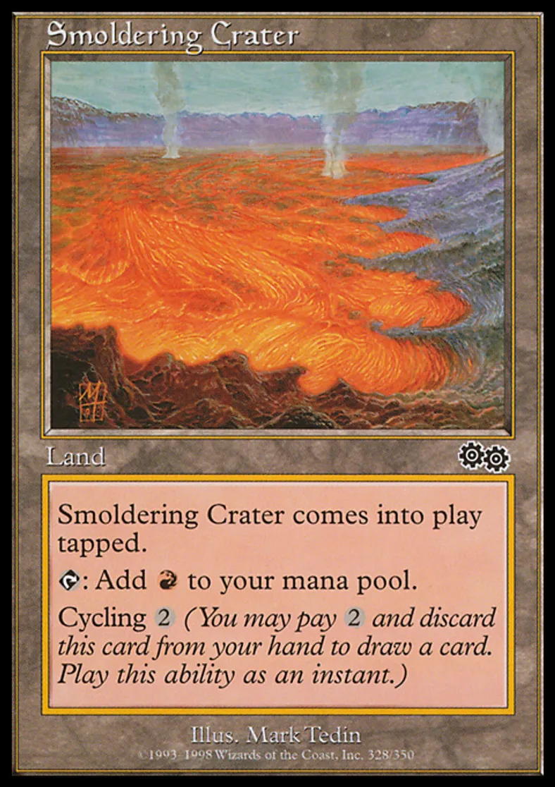 Magic: the Gathering (mtg) Common Land Smoldering Crater from Urza's Saga (USG) last updated 2026-02-21 17:32:02