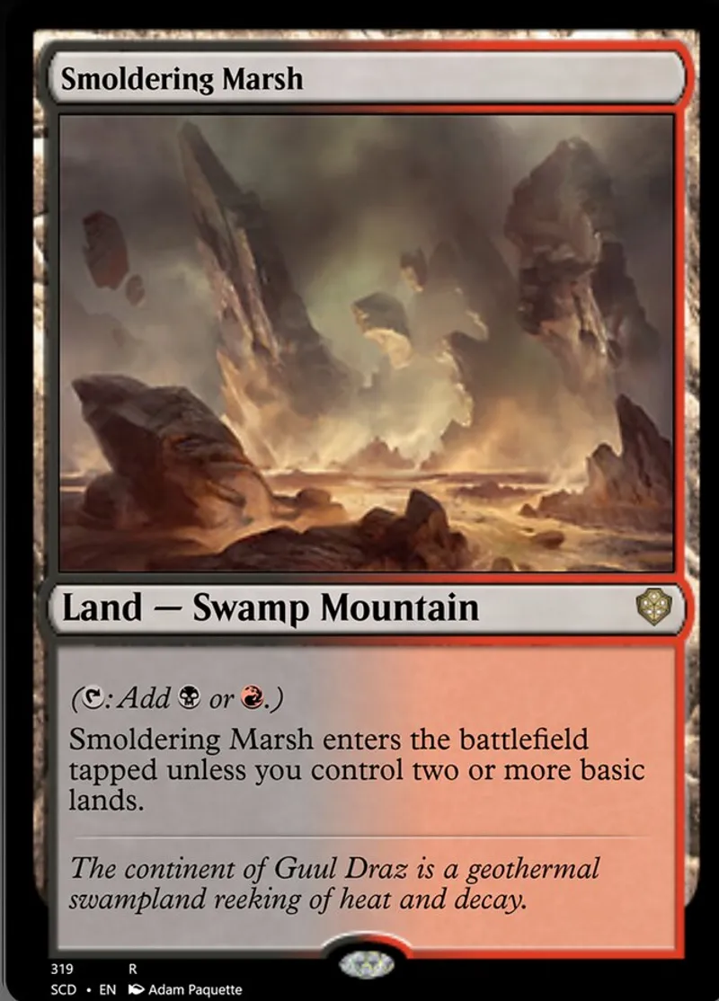 Magic: the Gathering (mtg) rare Land — Swamp Mountain Smoldering Marsh from Starter Commander Decks (scd) last updated 2026-02-24 15:41:02