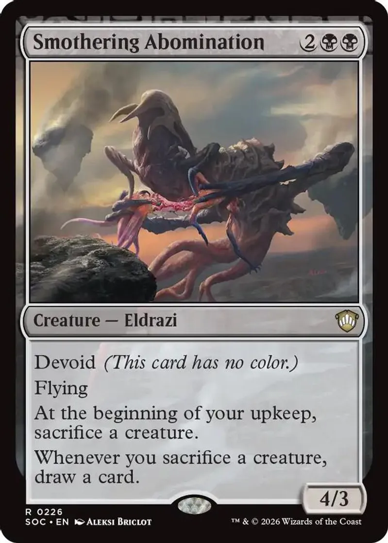 Magic: the Gathering (mtg) Rare creature — eldrazi Smothering Abomination from Commander: Secrets of Strixhaven (SOC) last updated 2026-04-17 00:24:10