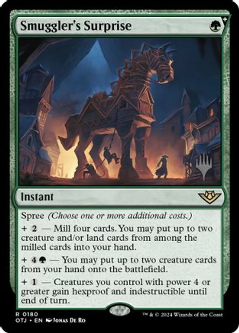 Smuggler's Surprise is a Rare in the set Promo Pack: Outlaws of Thunder Junction.