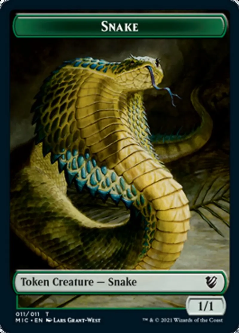 Magic: the Gathering (mtg) Token Token Creature — Snake Snake from Innistrad: Midnight Hunt Commander Tokens (TMIC) last updated 2026-02-21 16:02:02