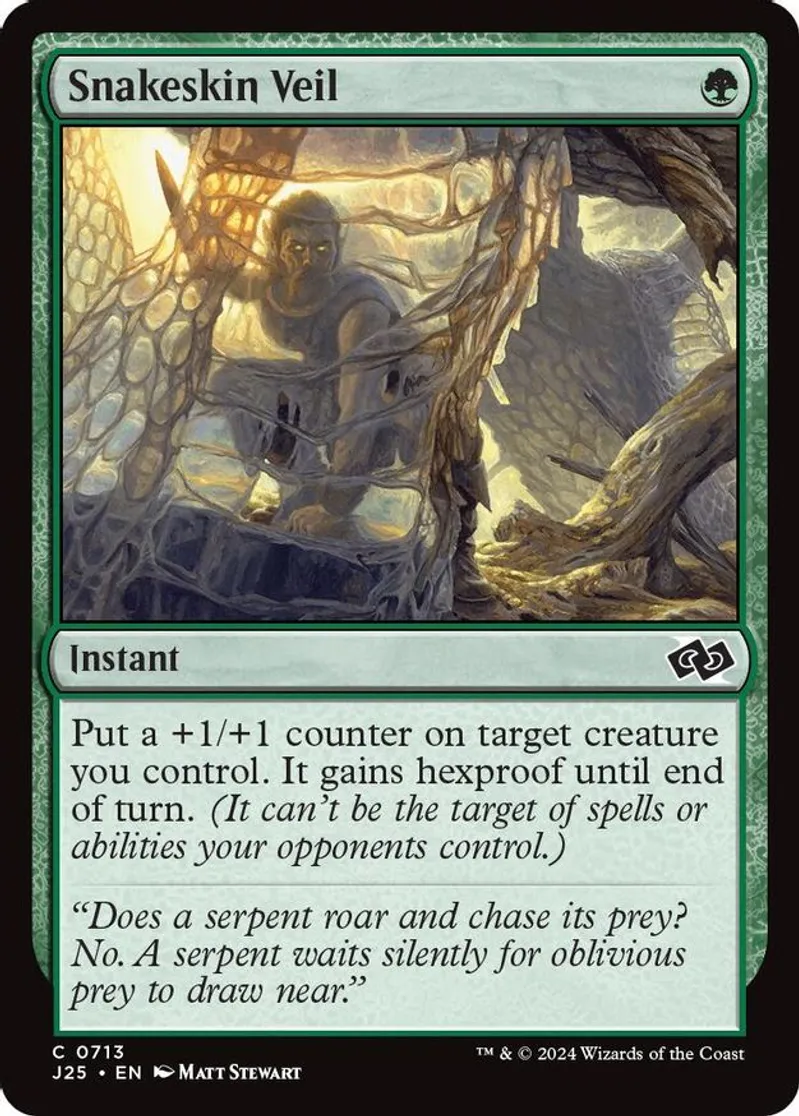 Magic: the Gathering (mtg) Common instant Snakeskin Veil from Foundations Jumpstart (J25) last updated 2026-02-21 15:34:32