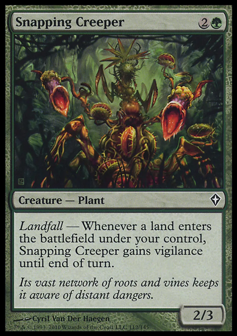 | Oracle Text | Landfall — Whenever a land enters the battlefield under your control, Snapping Creeper gains vigilance until end of turn. | ||