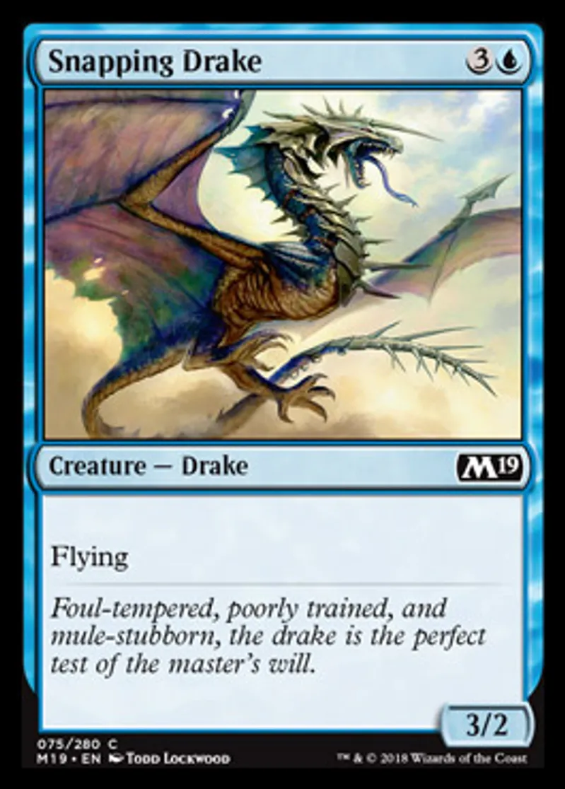 Magic: the Gathering (mtg) Common Creature - Drake Snapping Drake from Core Set 2019 (M19) last updated 2026-02-14 16:53:32