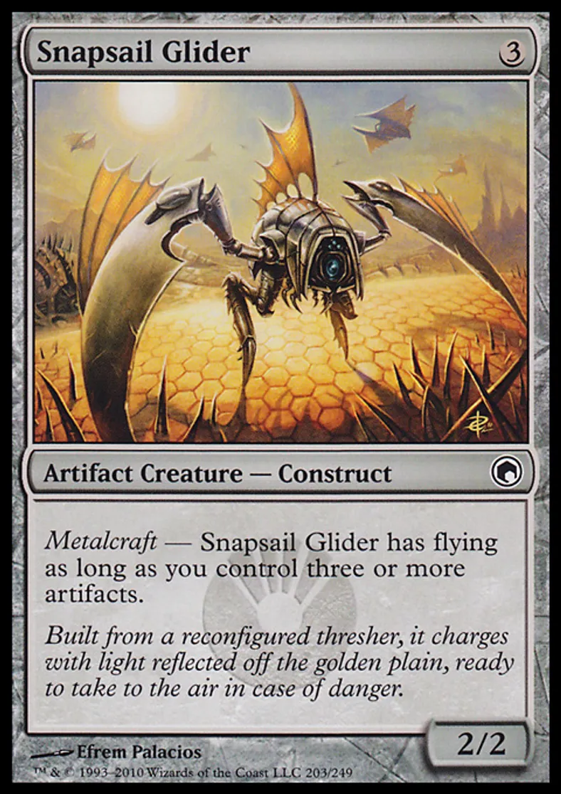 | Oracle Text | Metalcraft — Snapsail Glider has flying as long as you control three or more artifacts. | ||