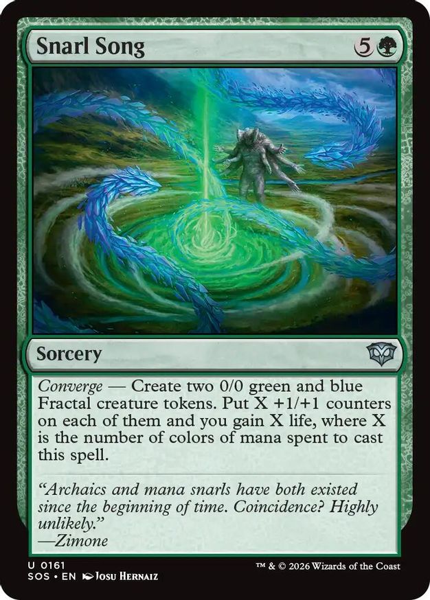 Magic: the Gathering (mtg) Uncommon sorcery Snarl Song from Secrets of Strixhaven (SOS) last updated 2026-04-16 23:17:36