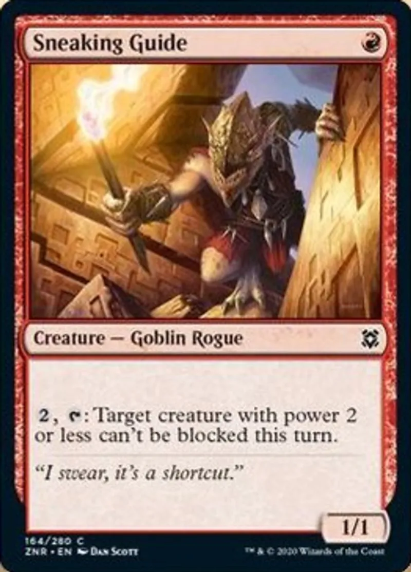 Magic: the Gathering (mtg) common Creature — Goblin Rogue Sneaking Guide from Zendikar Rising (znr) last updated 2026-02-21 16:29:03