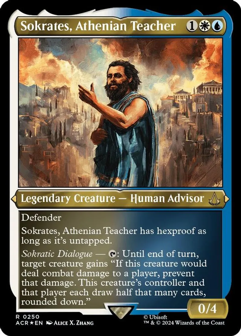 Magic: the Gathering (mtg) Rare legendary creature — human advisor Sokrates, Athenian Teacher from Universes Beyond: Assassin's Creed (ACR) last updated 2026-04-09 15:19:35
